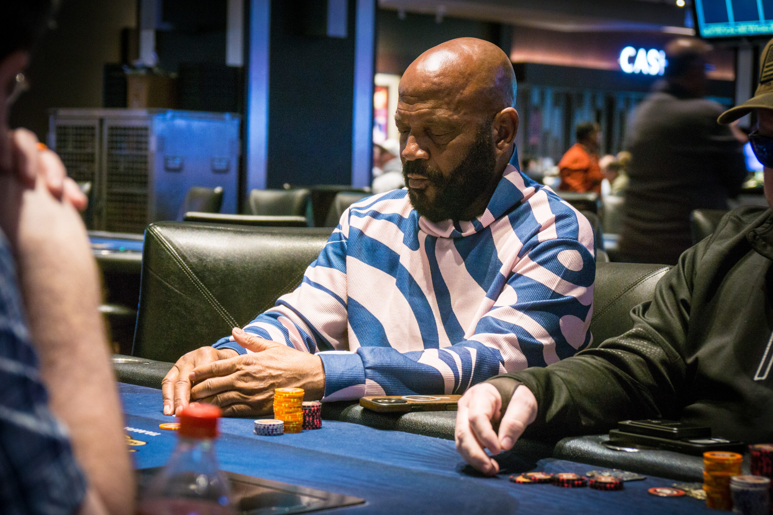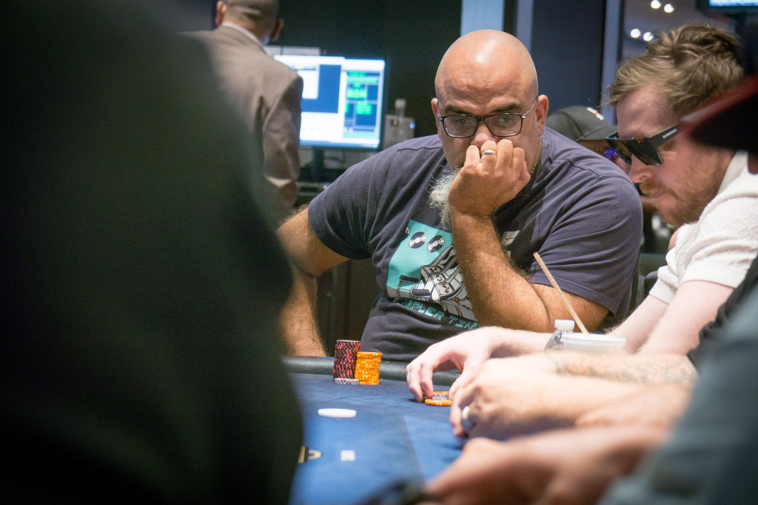 Flight C was dragging along at a slow pace late in the day, deep stacks and plenty of play with the bubble getting closer.
