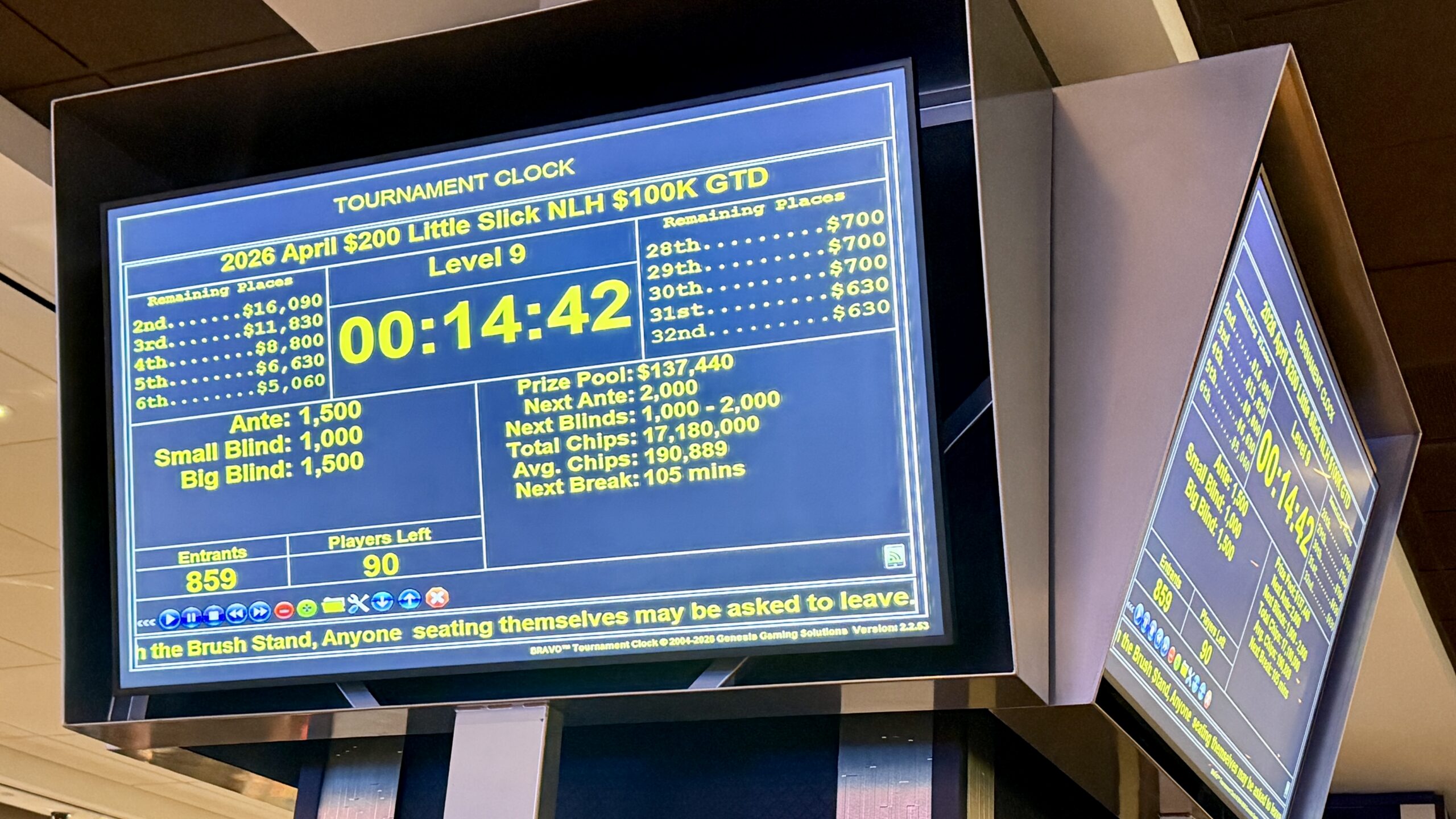 Day 2 Resume level 9 14:42 Blinds 1,000/1,500 with a 1,500 Ante