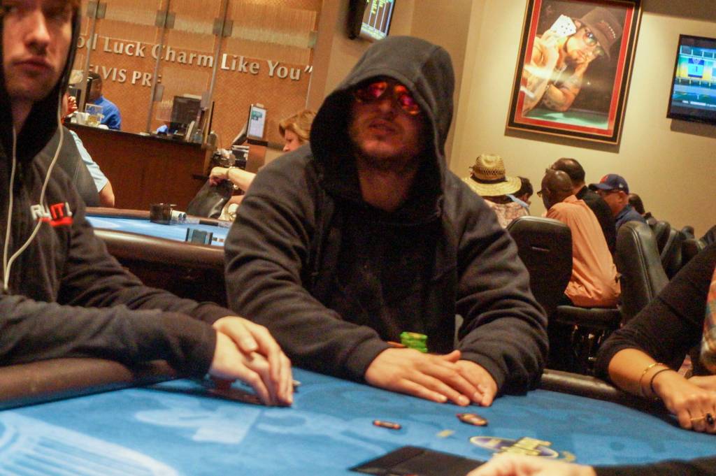 Last year’s Winter Poker Open Championship seventh-place finisher Carl Carodenuto — who’s proving difficult to grab a proper photo of — drew first blood in Flight C eliminating Jaclynn Moskow just moments ago.