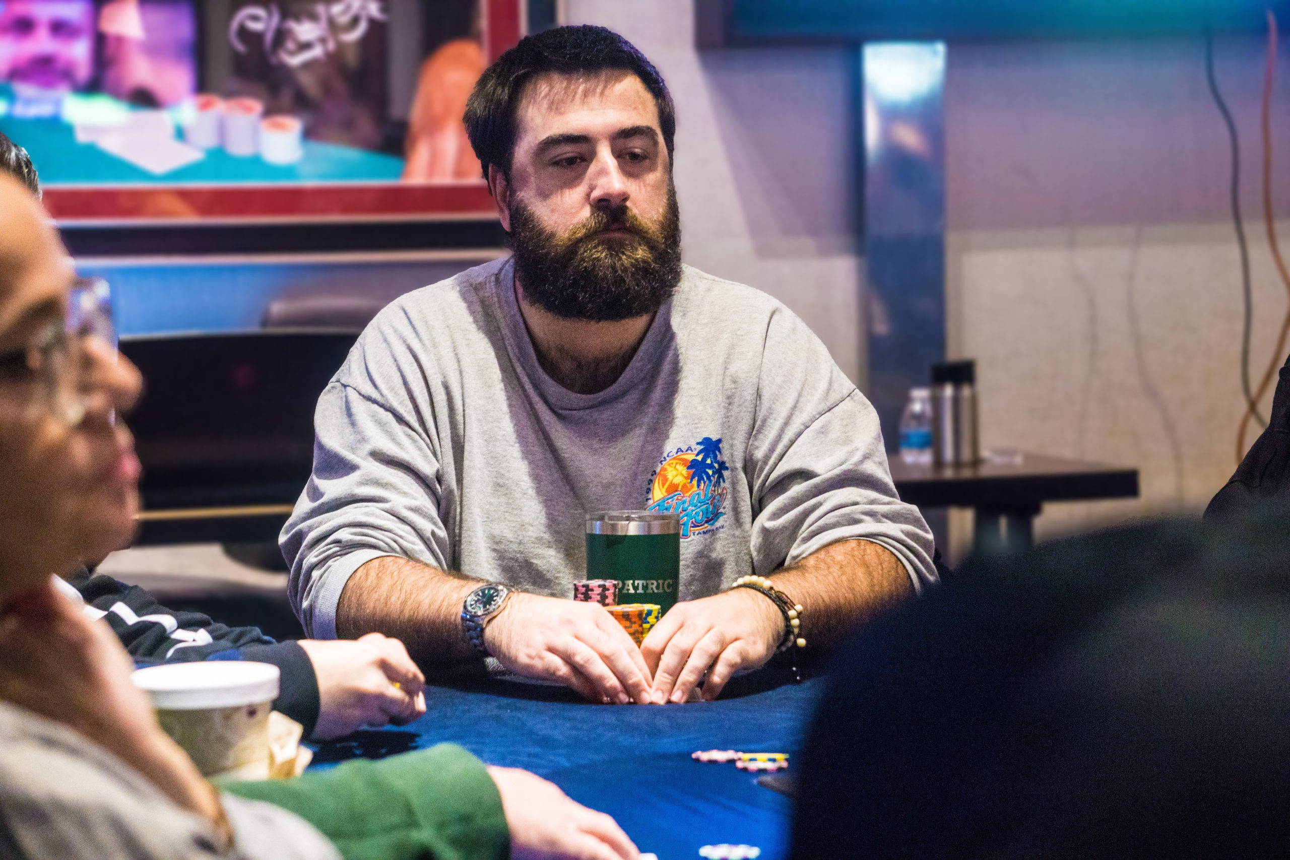 The first break is over and players returned to their seats for another three levels. The count topped 90 while they were gone and registration will remain open until 6:30 pm.
