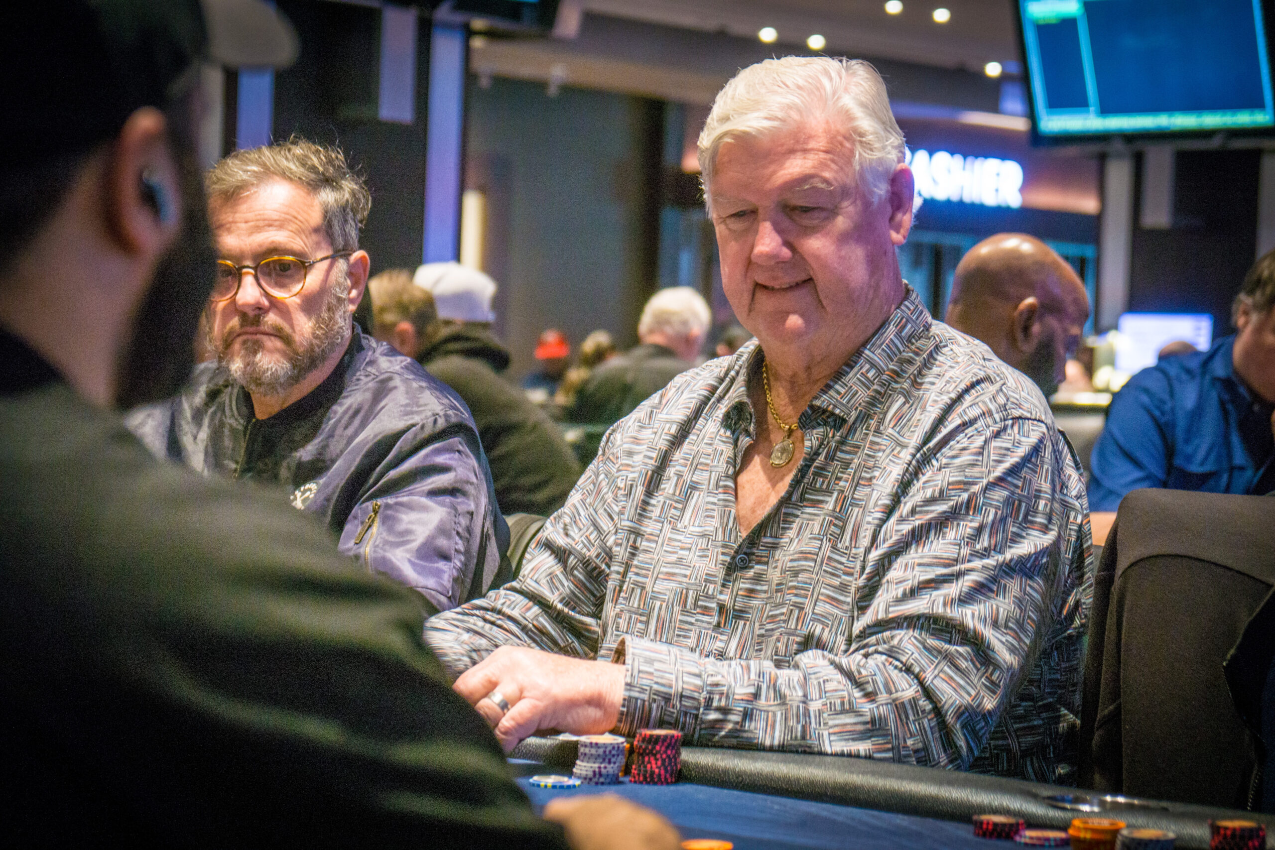 We missed the preflop action but caught up to it with four players all in and Stuart Phillips folded pocket nines face up with all the action.