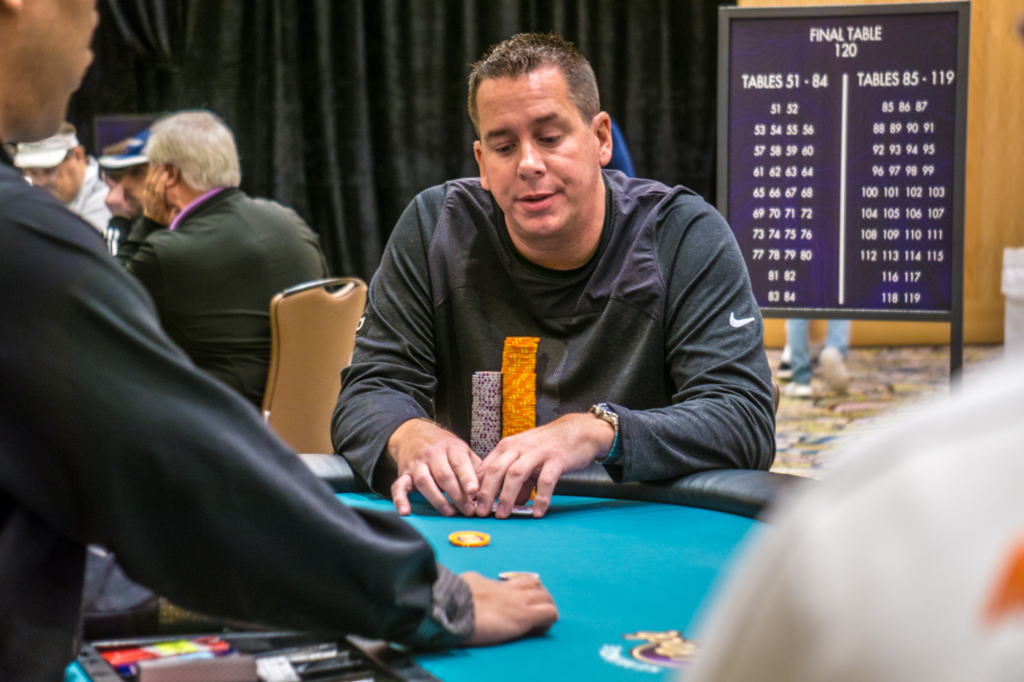 While we were neck-deep in the fast action at the Event 6 final table, the $1,100 PLO tournament lost two more players. Cory Wood went out in fifth place followed by WSOP Circuit Tampa PLO champ Michael Raimon in fourth.