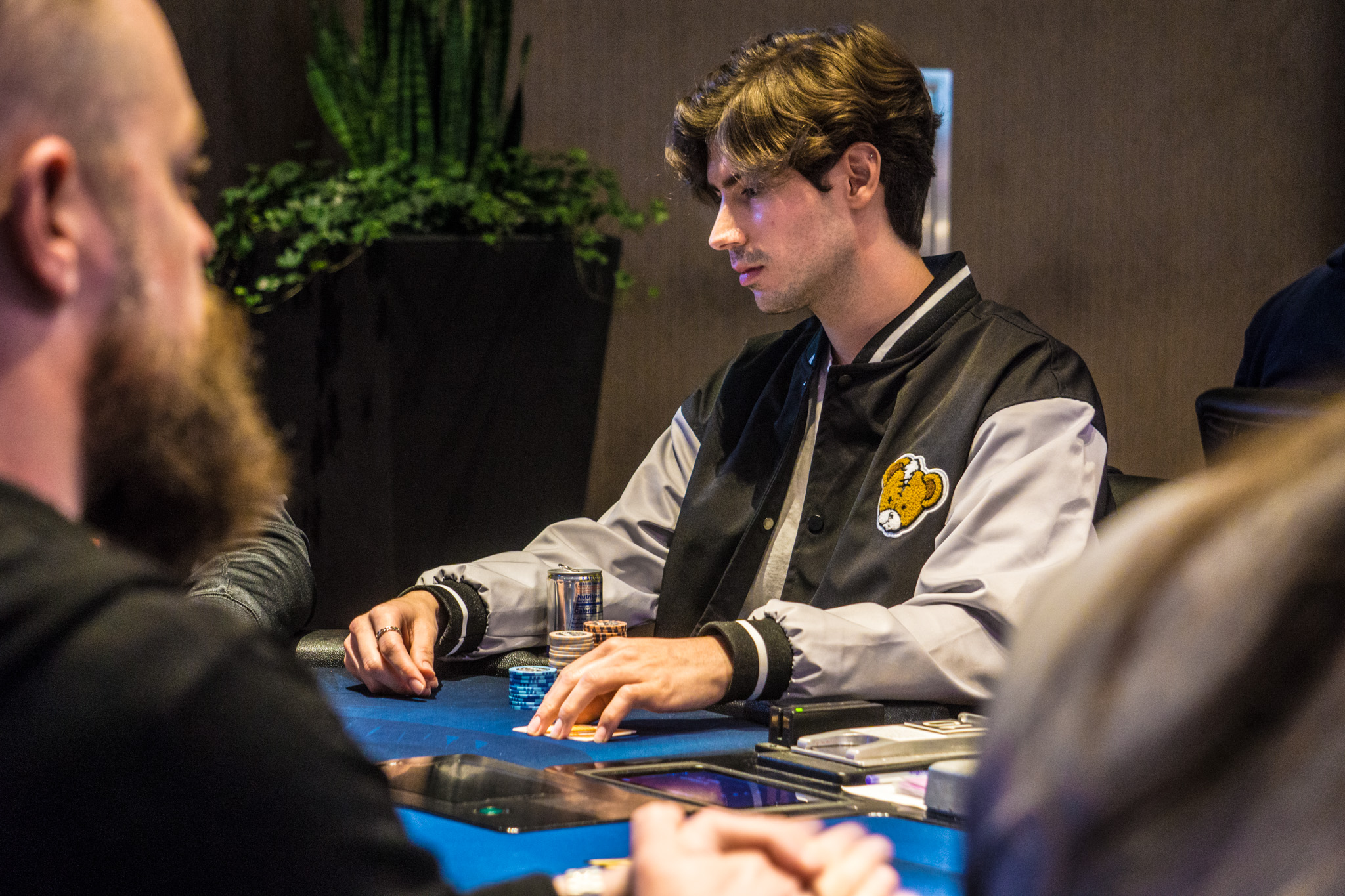 Flight B players returned from (likely) the last break of the day with 31 players remaining and 25 moving on to Day 2. They will go into hand-for-hand mode with 26 players remain and continue that way until we lose one player.