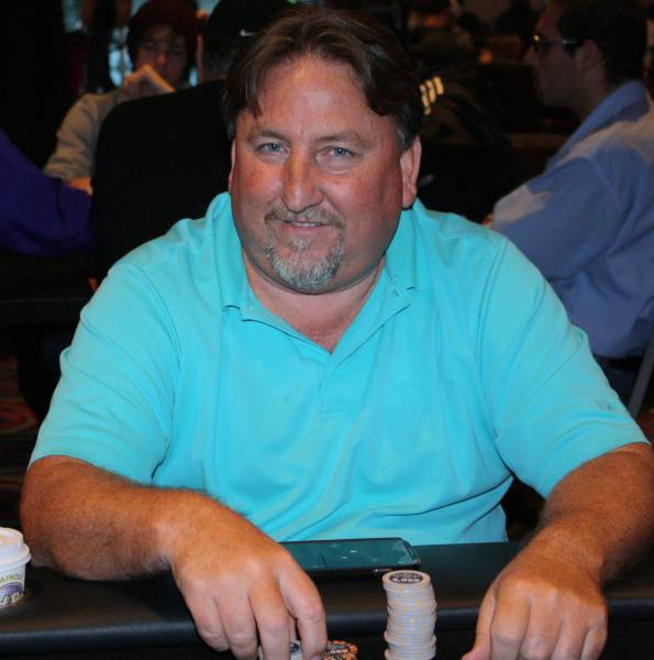Tuchman takes the lead with a pair of Aces and holds after blanks on the turn and river as he doubles through Patman.