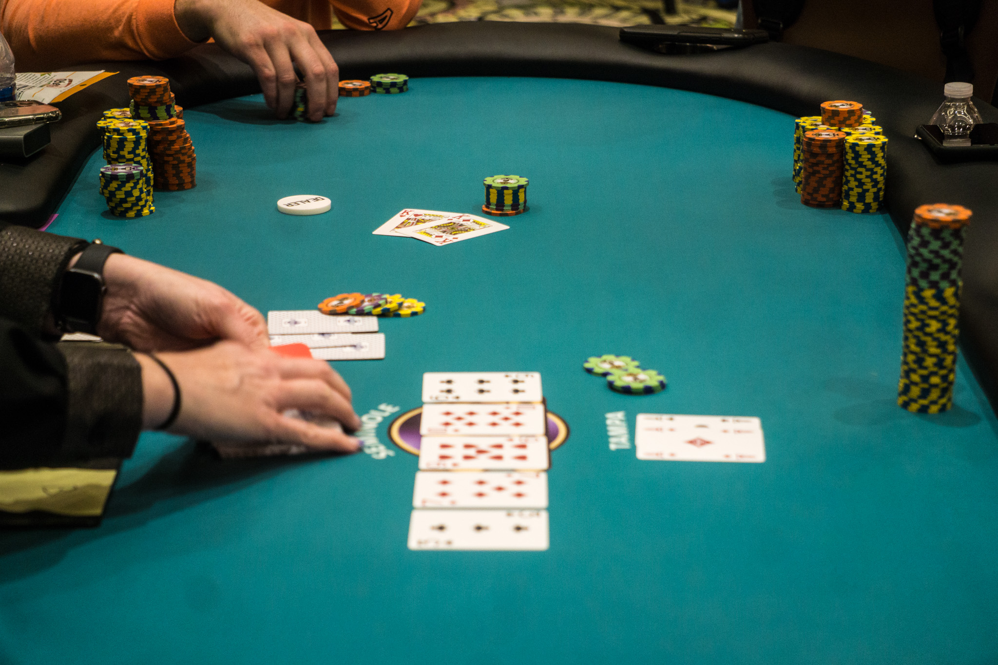 With 53 players remaining, the average chip stack is about 658,000 (41 big blinds), and the remaining players are all guaranteed at least $4,630 each.
