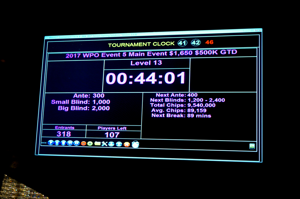 Cards are in the air for Level 13 and this marks the players’ final session of the evening. They’ll log two more levels before action wraps and those still in return for Day 2 tomorrow at 12pm.