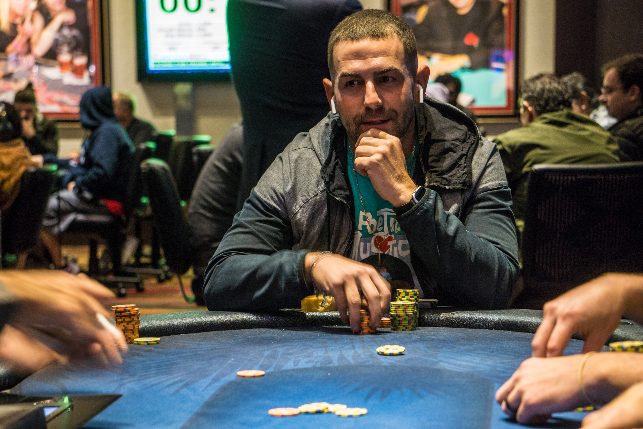 He ran over his table, knocked another player out as they were ready to pause the clock for the money bubble, and just like that the 16 remaining players were in the money. Kader did the heavy lifting and jumped into the lead with 530,000.