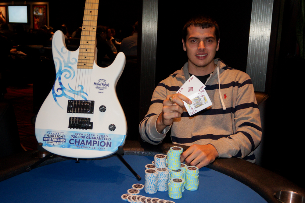 (Tampa, Fla.) — Having left the 2016 WPTDeepStacks series on a high note with a final table appearance and seventh-place finish in the Main Event, Bob Gallo returned to the Seminole Hard Rock Hotel & Casino hungry for another deep run. The Bradenton, Fla. business owner satisfied his appetite in Event 3, a $350 no limit hold’em tournament, late Wednesday night. Gallo dominated the late stages of the tournament, ultimately claiming the chip lead heads up before agreeing to an even chop that saw him earn $29,930 along with the guitar trophy.