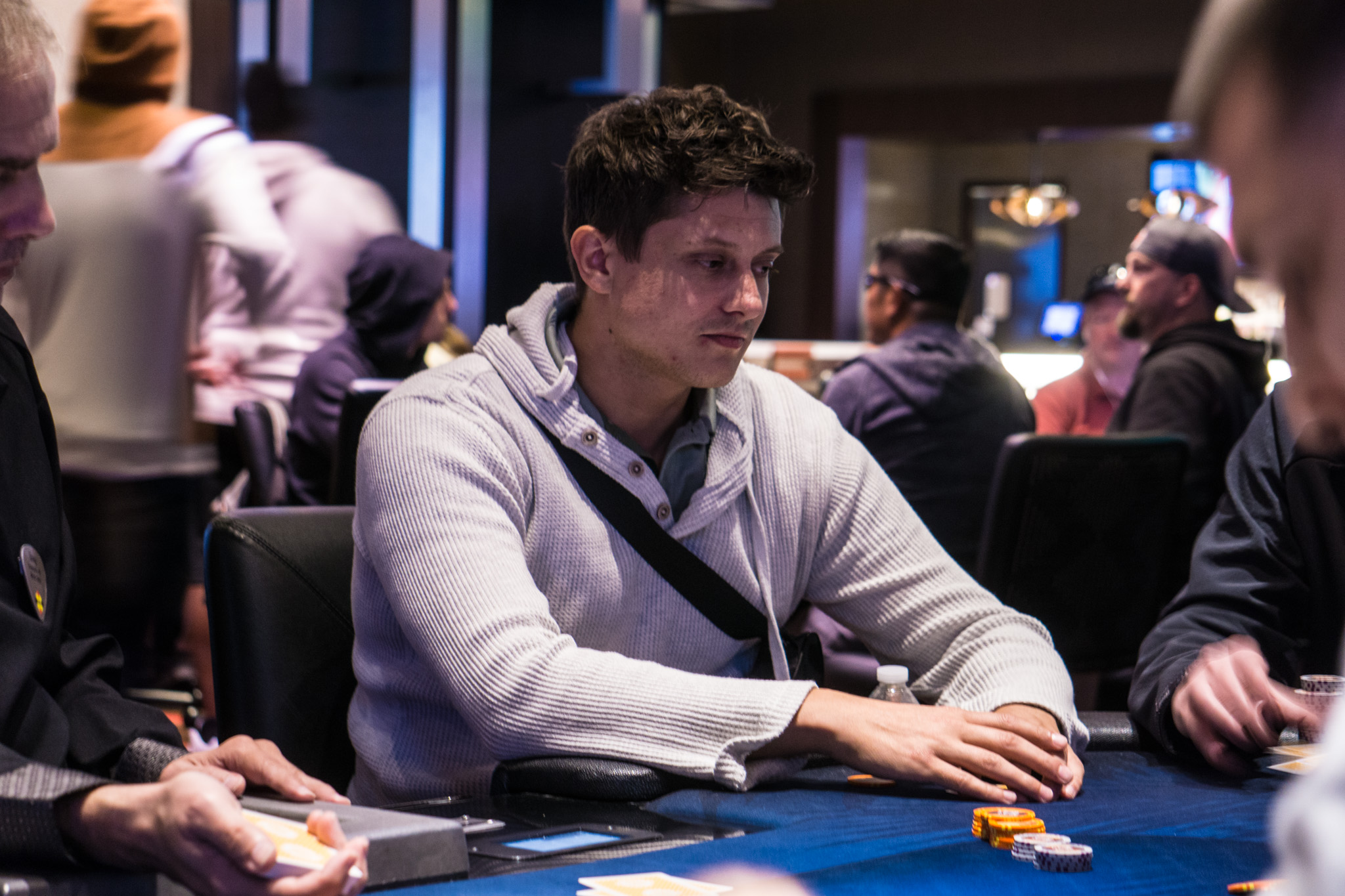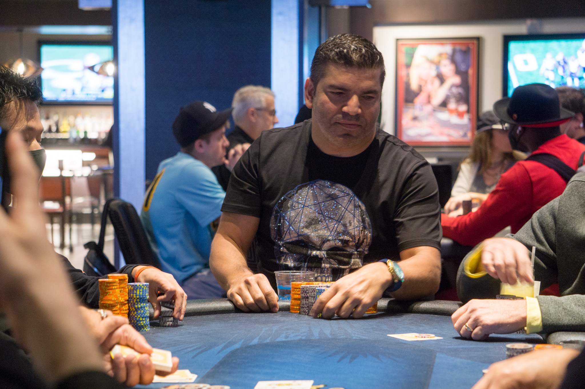 With 43 remaining and 41 getting paid, tournament staff were waiting for one player to be eliminated to begin hand-for-hand. But four players busted out at the same time around the room to suddenly put the field into the money with a little controlled chaos.
